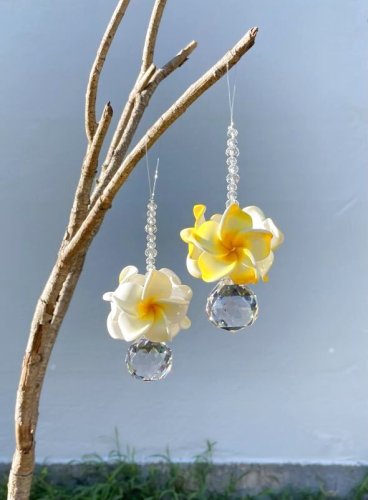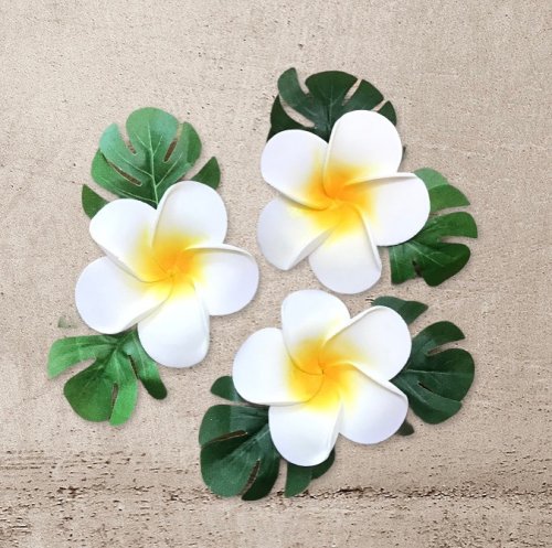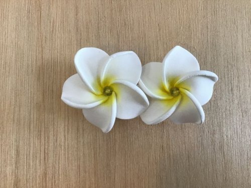 ピンクと白のプルメリアの花を レイ のようにあしらいました